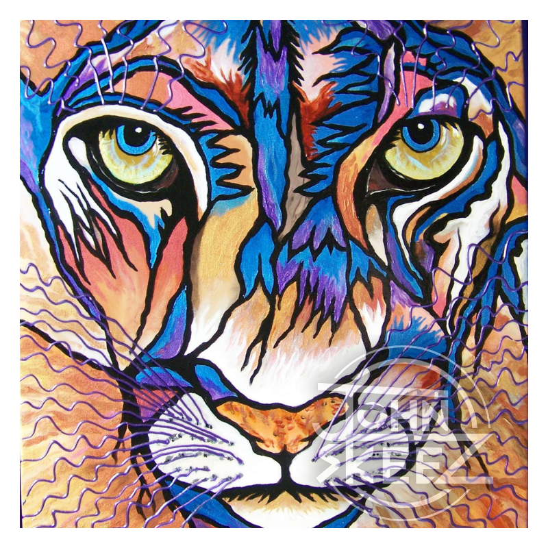 Acrylic on Canvas, Framed by John Skeez, created in 2013. Dimensions: 26″ x 32″. Second Place Award, Abstract Art Contest 2014, Hemet Valley Art Assoc. Coordinating purple “floating” wood frame.