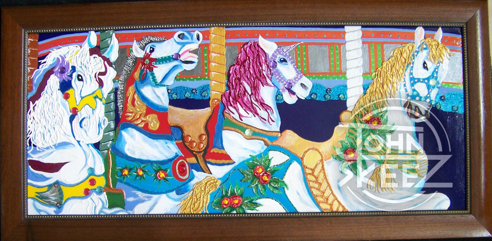 Stunning Acrylic/Mixed Media Painting on Wood Panel with purchased Wood Frame, created by John Skeez in 2015. Dimensions: 53″ × 26″.